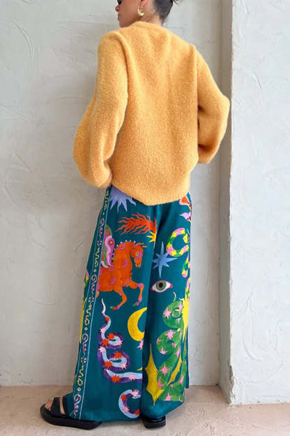 Pierson Linen Blend Unique Print Elastic Waist Pocketed Wide Leg Pants